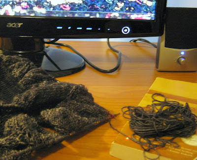 On a side note... guess what ELSE this photo shows? It's my Haruni shawl! The colour is terrible, of course, since that's sort of a grey/purple yarn you're looking at. lol I have two lines of lace left to do, with purls in between, and then casting off. And that little tiny yarn pile beside it? That's the end of my skein. lol Doh!! I have a couple others, so I'm not freaking out and frogging or anything, it just means that I'm going to have to recake another skein. Last time that was a huga P.I.T.A. It must have taken me almost two hours to cake that damn yarn because it was getting all tangled around itself. Is there a secret to winding? Am I missing the bus anywhere?